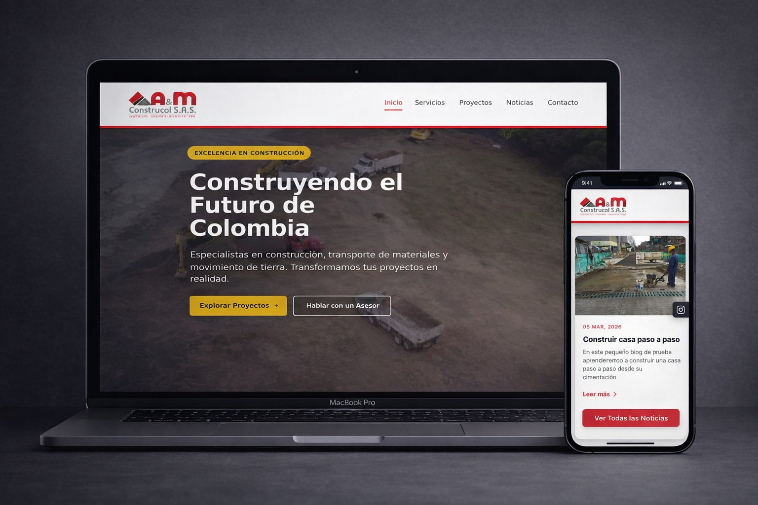 Plataforma corporativa con panel administrativo a medida para la gestión de obras y noticias en tiempo real.